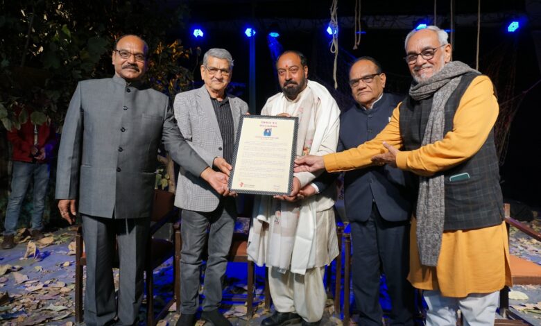 ਅੰਮ੍ਰਿਤਸਰ ( ਹਰਪਾਲ ਲਾਡਾ ): ਮਹਾਂਕਵੀ ਕਾਲੀਦਾਸ ਦੀ ਧਰਤੀ ਉਜੈਨ (ਮੱਧ ਪ੍ਰਦੇਸ਼) ਵਿਖੇ ਅਭਿਨਵ ਰੰਗਮੰਡਲ ਵਲੋਂ ਕਰਵਾਏ ਗਏ 40ਵੇਂ ਰਾਸ਼ਟਰੀ ਰੰਗਮੰਚ ਉਤਸਵ ਦੌਰਾਨ ਭਾਰਤੀ ਰੰਗਮੰਚ ਦੀ ਦੁਨੀਆ ਦੀ ਜਾਣੀ-ਪਹਿਚਾਣੀ ਸ਼ਖ਼ਸੀਅਤ ਸ਼੍ਰੋਮਣੀ ਨਾਟਕਕਾਰ ਕੇਵਲ ਧਾਲੀਵਾਲ ਨੂੰ ਸਨਮਾਨਿਤ ਕੀਤਾ ਗਿਆ|