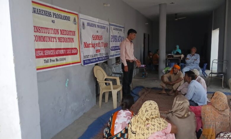 ਇਸ ਤੋ ਇਲਾਵਾ ਆਮ ਲੋਕਾਂ ਨੂੰ ਦਫਤਰ ਜ਼ਿਲ੍ਹਾ ਕਾਨੂੰਨੀ ਸੇਵਾਵਾਂ ਅਥਾਰਟੀ ਵੱਲੋ ਪ੍ਰਦਾਨ ਮੁਫਤ ਕਾਨੂੰਨੀ ਸੇਵਾਵਾਂ ਬਾਰੇ , ਪੋਸਕੋ ਐਕਟ, ਮੀਡੀਏਸ਼ਨ ਅਤੇ ਕਮਿਊਨਟੀ ਮੀਡੀਏਸ਼ਨ , ਸਨਮਾਨ ਨਾਲ ਵਿਆਹ, ਟੋਲ ਫਰੀ ਨੰਬਰ 15100 ਬਾਰੇ ਜਾਗਰੂਕਤ ਕੀਤਾ ਗਿਆ ।