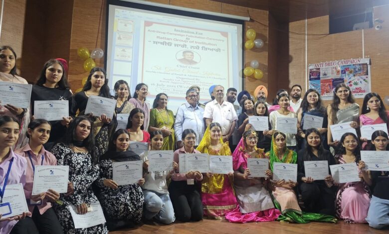 ਸਾਹਿਬਜ਼ਾਦਾ ਅਜੀਤ ਸਿੰਘ ਨਗਰ, 16 ਜੁਲਾਈ 2025 ( ਹਰਪਾਲ ਲਾਡਾ ): ਰਤਨ ਪ੍ਰੋਫੈਸ਼ਨਲ ਐਜੂਕੇਸ਼ਨ ਕਾਲਜ, ਸੈਕਟਰ-78, ਸੋਹਾਣਾ (ਮੋਹਾਲੀ) ਵੱਲੋਂ ਅੱਜ ਨਸ਼ਾ ਵਿਰੋਧੀ ਮੁਹਿੰਮ ਦੇ ਤਹਿਤ ਇੱਕ ਵਿਸ਼ੇਸ਼ ਸਨਮਾਨ ਸਮਾਰੋਹ ਦਾ ਆਯੋਜਨ ਕੀਤਾ ਗਿਆ। ਸਮਾਰੋਹ ਵਿੱਚ ਮੁੱਖ ਮਹਿਮਾਨ ਦੇ ਤੌਰ ਤੇ ਪੰਜਾਬ ਦੇ ਰਾਜਪਾਲ ਸ੍ਰੀ ਗੁਲਾਬ ਚੰਦ ਕਟਾਰੀਆ ਵੱਲੋਂ ਸ਼ਿਰਕਤ ਕੀਤੀ ਗਈ। ਇਸ ਮੌਕੇ ੳਨ੍ਹਾਂ ਵੱਲੋਂ ਕਾਲਜ ਦੇ ਵਿਹੜੇ ਵਿੱਚ ਰੁੱਖ ਲਗਾ ਕੇ ਪੰਜਾਬ ਨੂੰ ਹਰਿਆ-ਭਰਿਆ ਅਤੇ ਸਿਹਤਮੰਦ ਪੰਜਾਬ ਬਣਾਉਣ ਲਈ ਯੋਗਦਾਨ ਪਾਉਣ ਦੀ ਅਪੀਲ ਕੀਤੀ ਗਈ।