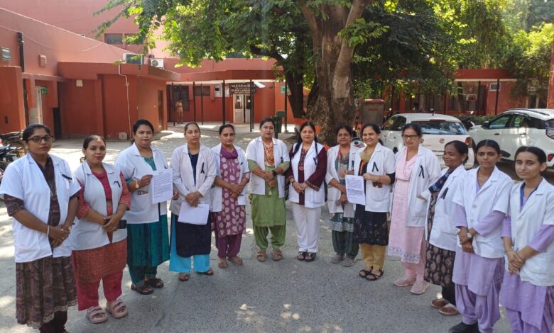 ਨਰਸਿੰਗ ਐਸੋਸੀਏਸ਼ਨ ਵੱਲੋ ਕਾਲੇ ਬਿੱਲੇ ਲਾ ਸਿਵਲ ਹਸਪਾਤਲ ਵਿਖੇ ਰੋਸ ਰੈਲੀ
